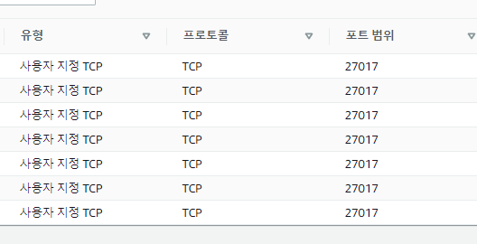 aws ec2 보안 그룹 설정 > 인바운드 규칙 > 27017