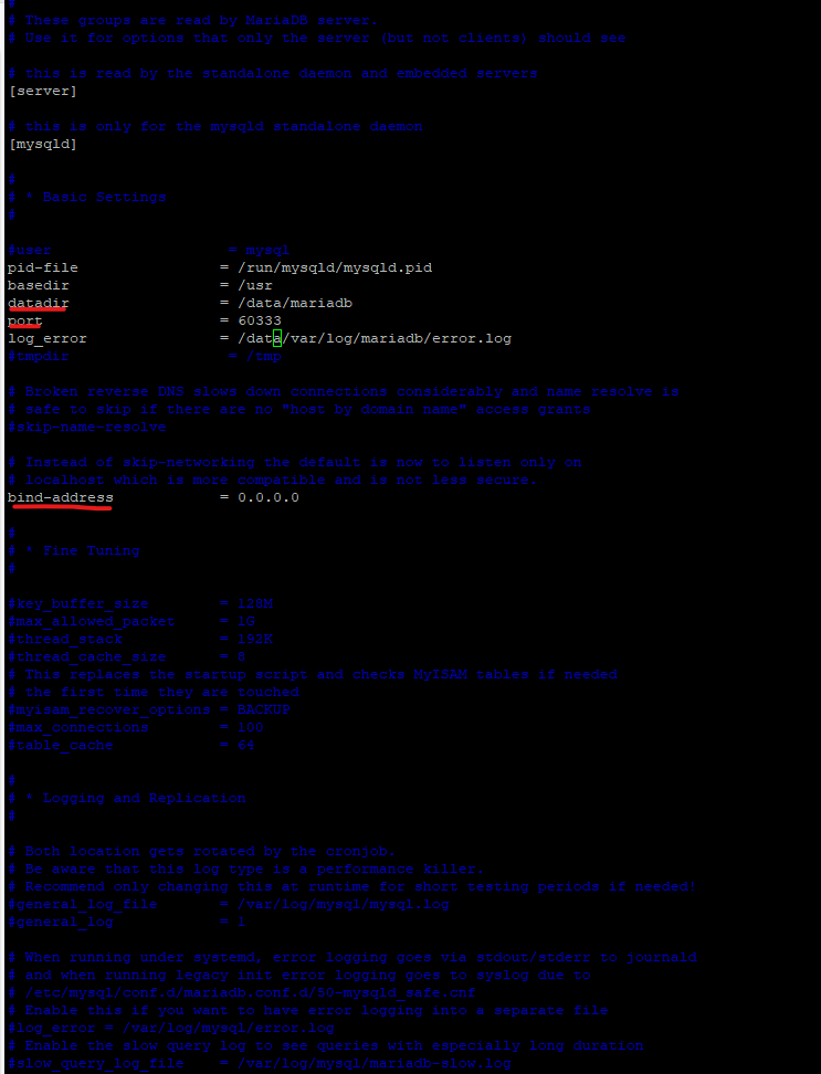 sudo vim /etc/mysql/mariadb.conf.d/50-server.cnf