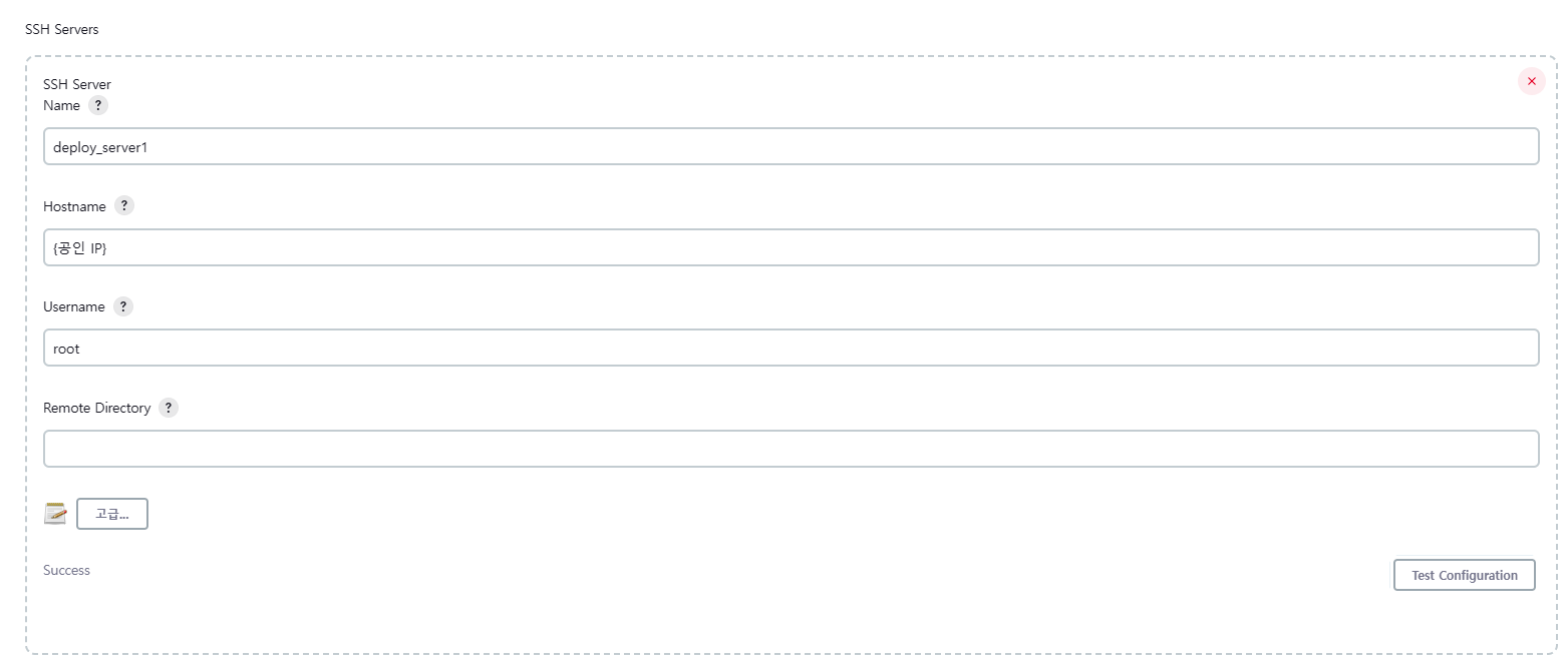 ssh or password로 test configuration success 확인 해주시면 됩니다.