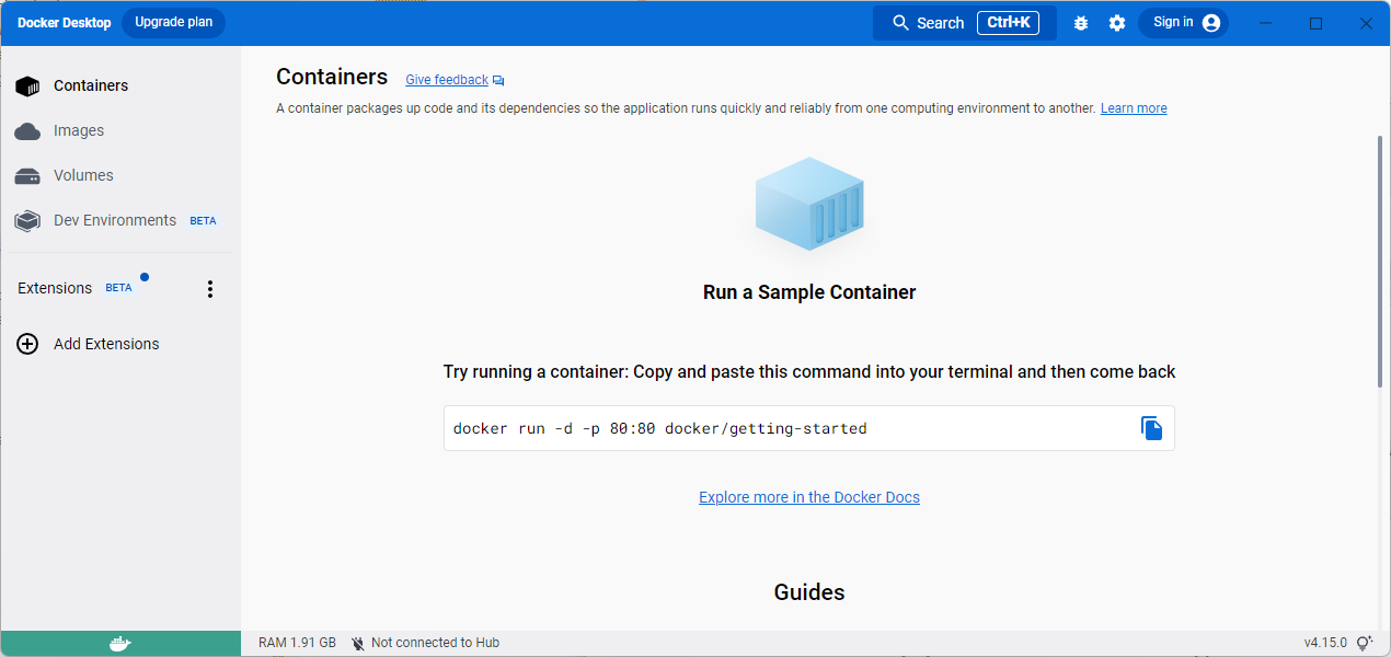 docker container 명령어를 사용하여 container를 생성해 보세요.