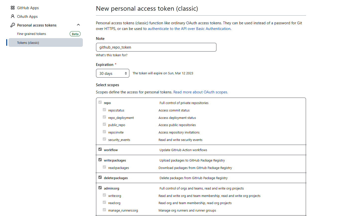 만들어진 토큰을 안전한 곳에 저장해주세요.