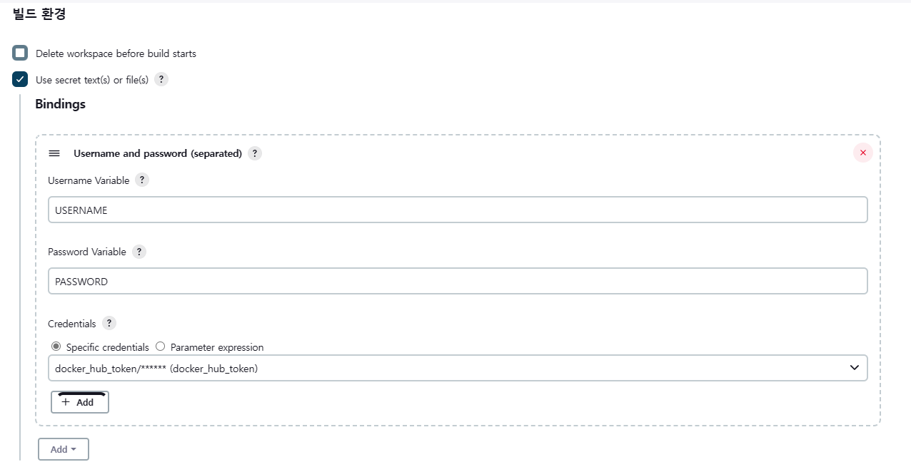 Docker Hub Token을 변수에 담아서 사용하기 위한 세팅입니다.